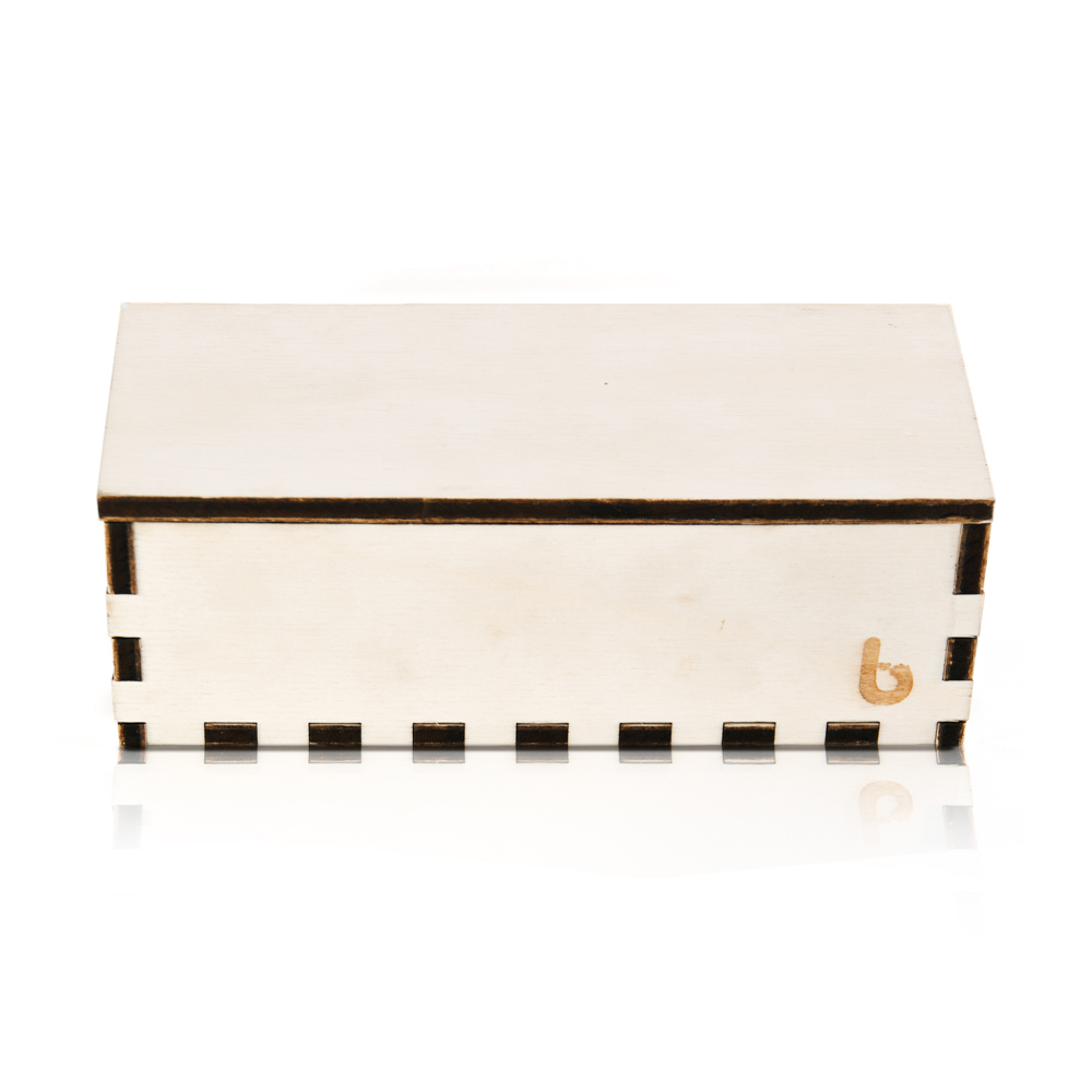 The grammar symbols are made entirely of birch wood and consist of a series of nine different symbols (15 copies of each symbol) corresponding to the nine parts of speech. All symbols are contained in a compartmentalised box with a lid.