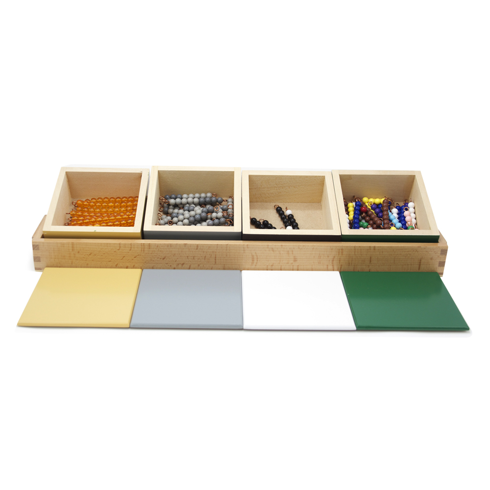The material of subtraction snake game is a material for the development of the mathematical mind, and it is a work that can be introduced in parallel with that of the chains of 100 and 1000; it is a fundamental material on which to base the development of details of the same knowledge, in this case subtraction. The exercise with this material has in itself a specific and interesting purpose: it fixes the child's attention on the difficulty of counting through ten. It serves not only to deepen knowledge, but also to make it clearer. The negative snake is a very useful tool for doing long and complex subtraction series in a simple way.