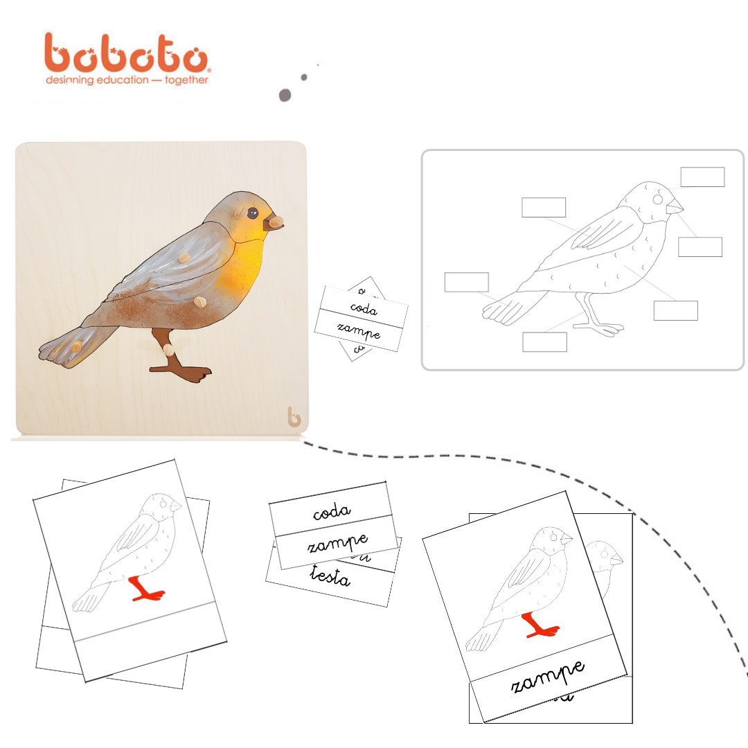 The kit is designed to allow the child to work in complete autonomy and discover, in a simple and pleasant way, the scientific characteristics of this bird, very common in our countryside, symbol of winter and resistance.