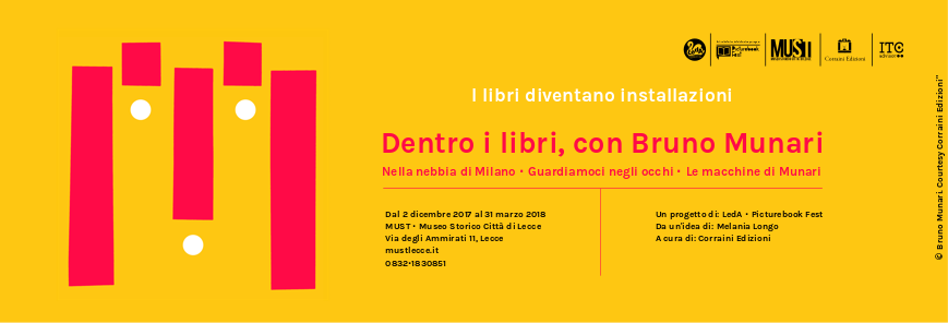 « A cosa serve un libro? Ad aumentare la conoscenza del mondo». Sabato 2 dicembre, presso il MUST- Museo Storico di Lecce, è stata inaugurata la mostra “Dentro i libri, con Bruno Munari. I libri diventano installazioni”, un progetto di LedA Laboratori e Picturebook Fest- Festival dell’arte e della letteratura per ragazzi di Lecce, a cura di Corraini Edizioni.