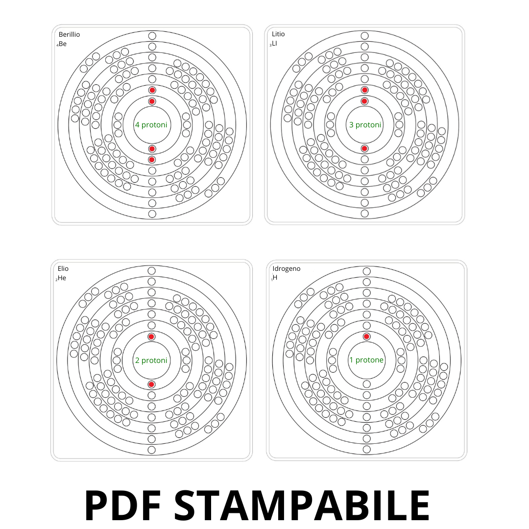 Il Modello Atomico è un materiale di sviluppo Montessori per esplorare la chimica e la struttura della materia, ovvero tutto ciò che ha massa e occupa spazio. Attraverso perle colorate che rappresentano protoni, neutroni ed elettroni, il bambino costruisce fisicamente gli atomi, comprende il numero atomico e di massa e scopre i 118 elementi della Tavola Periodica grazie alle schede che saranno inviate in allegato in versione PDF .