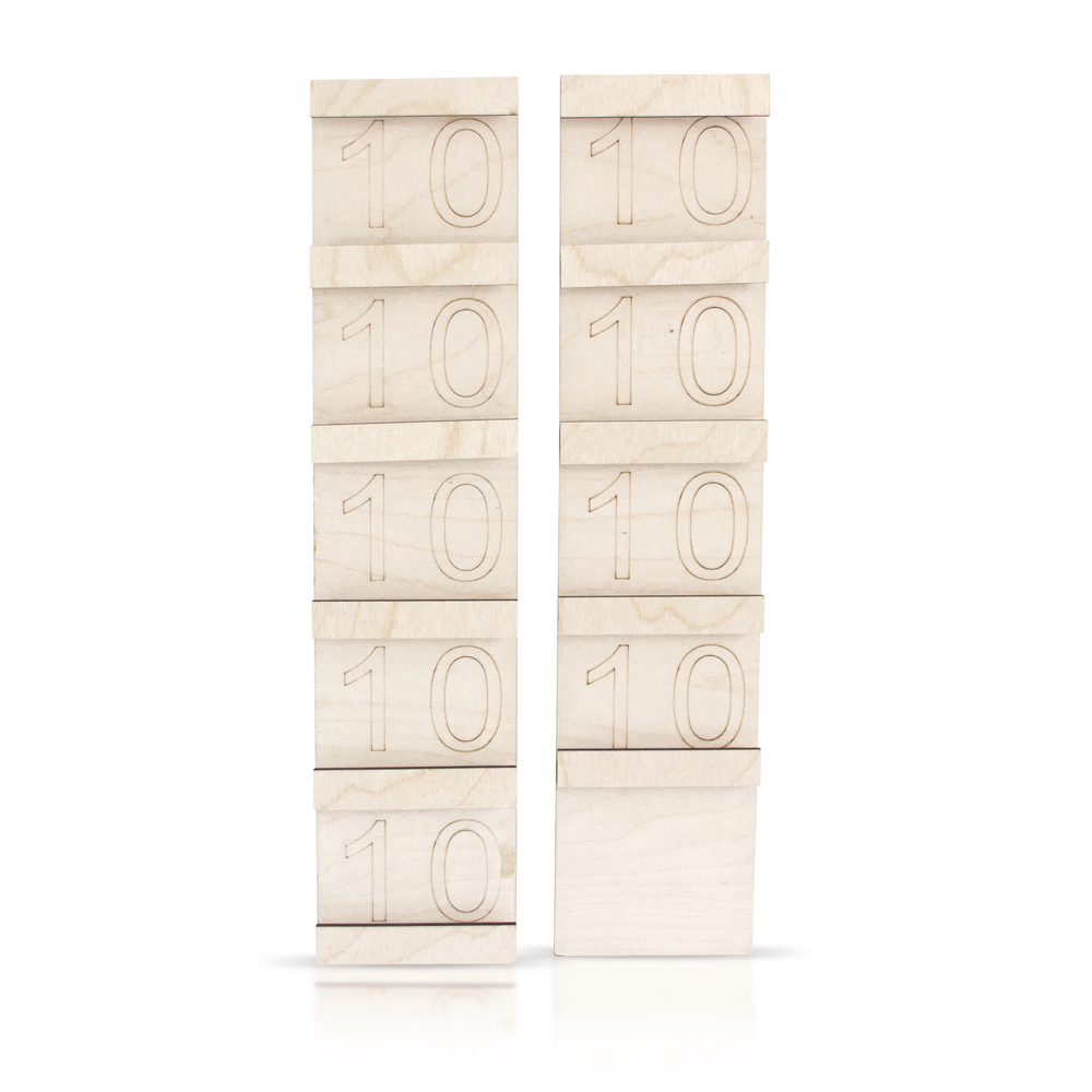 Materiale "matematico - basico". Età: da circa cinque anni. Le tavole e i cartellini sono in legno di betulla. Le tavole del Séguin sono un utile sussidio didattico per conoscere e favorire la scrittura e la composizione dei simboli numerici da dieci a diciannove.