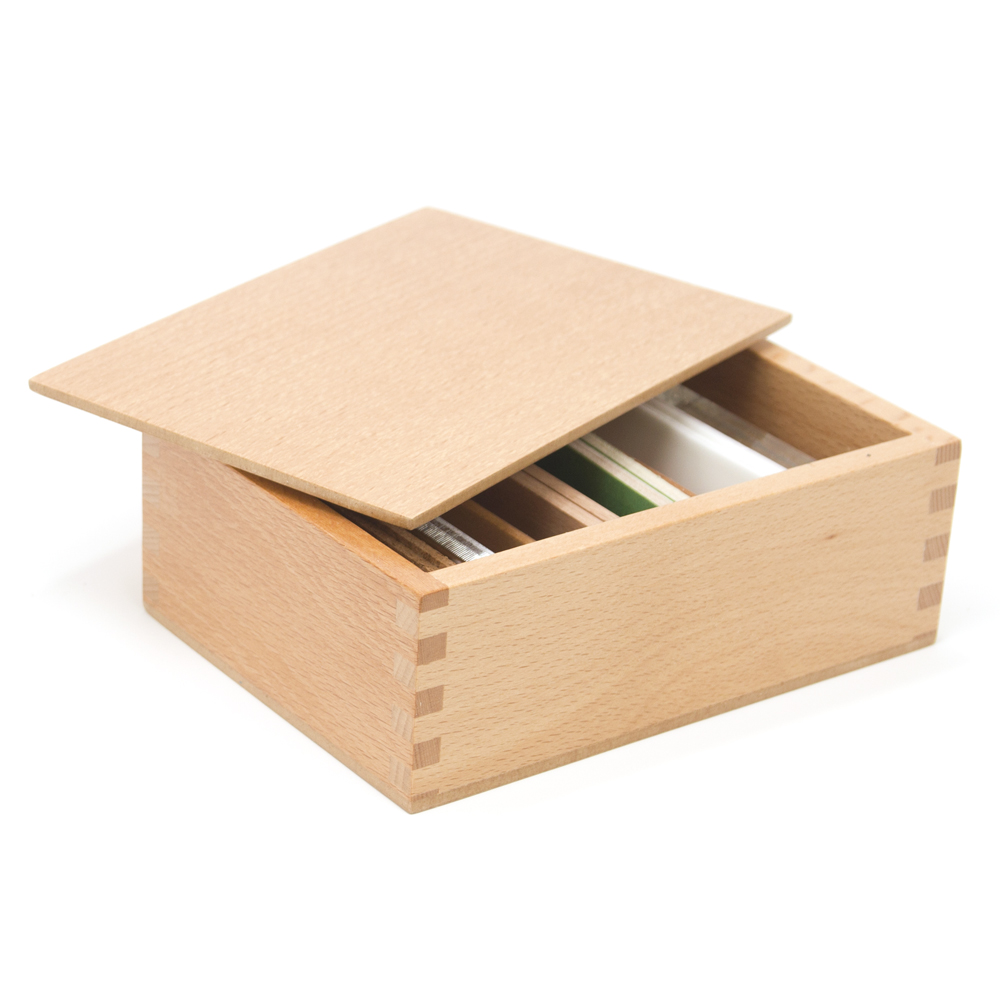 Materiale Sensoriale: costituito da un insieme di oggetti "raggruppati secondo una determinata qualità fisica"- peso, temperatura, dimensione, forma, colore, suono, ecc. - il perfezionamento della percezione di ciascun senso favorisce l'esplorazione e la conoscenza. ETA': da tre anni. La scatola è in legno betulla, contiene 6 coppie di tavolette: ferro, vetro, marmo, legno, feltro e sughero. I sensi, "finestre sul mondo", accompagnano lo sviluppo. Il gioco delle tavolette termiche, attraverso una manipolazione attiva, è utile per l'educazione al tatto.